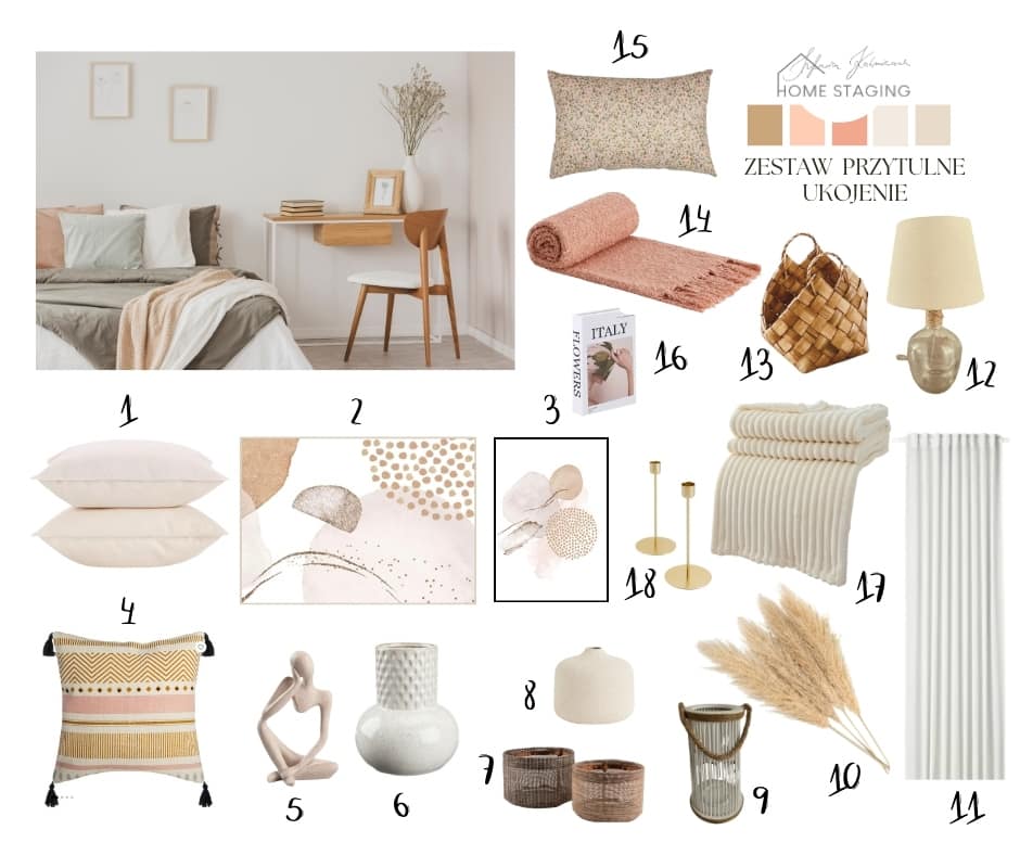 Zestaw „Przytulne Ukojenie” to kolekcja tekstyliów i dodatków, tworząca ciepłą i kojącą atmosferę w domu. Wykorzystuje miękkie materiały, stonowane kolory i dodatki, które zapewniają uczucie relaksu i przytulności. Idealny wybór dla tych, którzy pragną stworzyć przyjemne miejsce do wypoczynku.